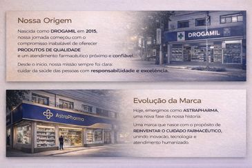 Com o crescimento da empresa e a evolução do nosso compromisso com a saúde, surgiu a AstraPharma, uma nova fase da nossa história que une tradição, inovação e excelência no cuidado farmacêutico.